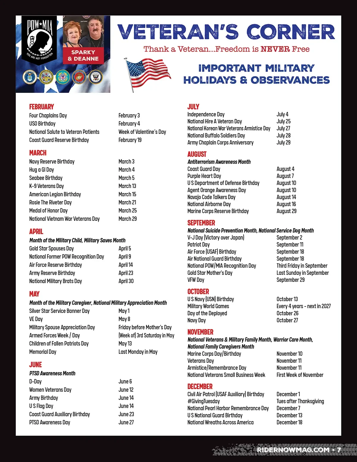 If you or someone you know has served, contact us with their name, branch, dates of service and a photo to be featured in this monthly column!
